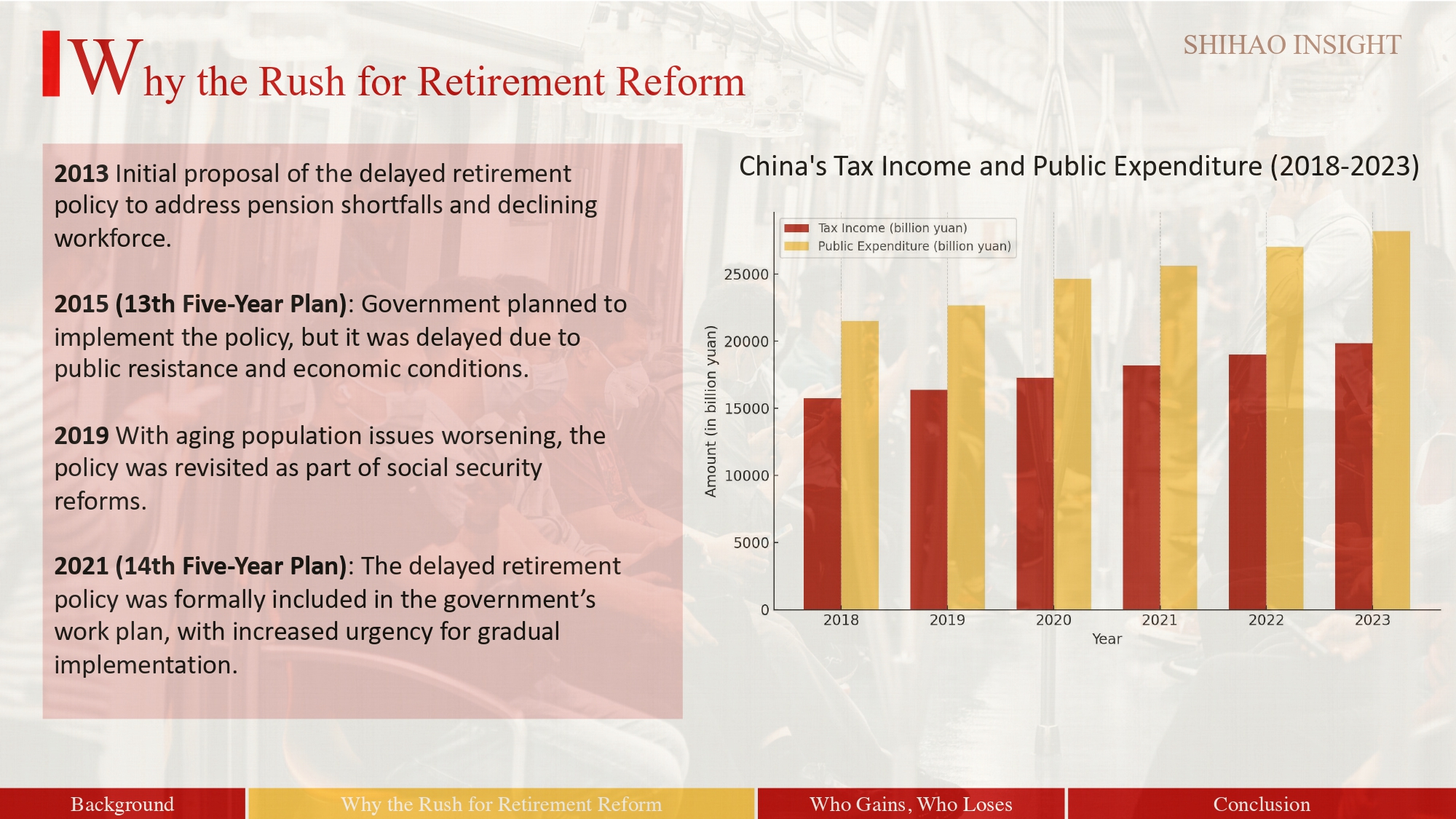 The Chinese government first introduced the concept of delaying the retirement age as early as 2013. At that time, discussions around postponing retirement gained momentum amid increasing demographic pressures from an aging population and mounting strains on the country’s pension fund system.