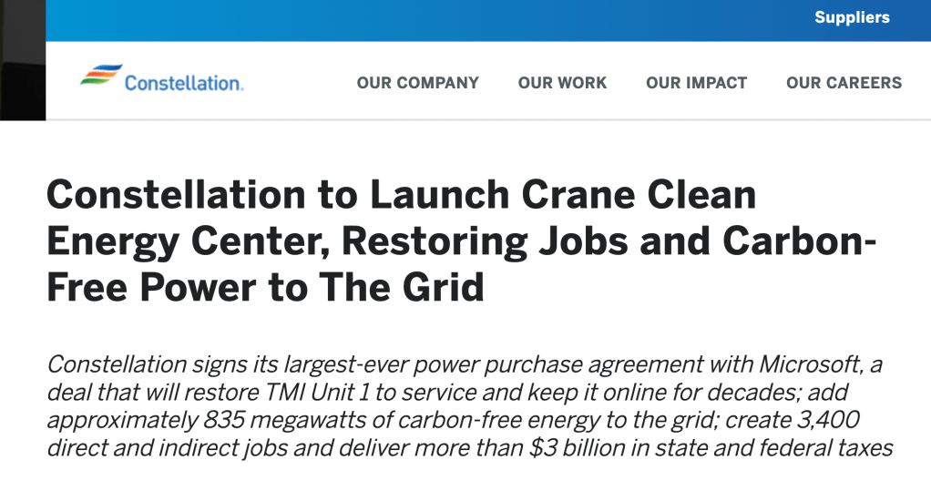 Microsoft has entered a 20-year power purchase agreement with Constellation Energy to restart operations at the Three Mile Island nuclear plant, specifically its undamaged reactor. Constellation will invest $1.6 billion to bring the plant back online by 2028. This initiative aims to power Microsoft’s AI data centers with carbon-free nuclear energy, highlighting the company’s commitment to sustainability and energy reliability.